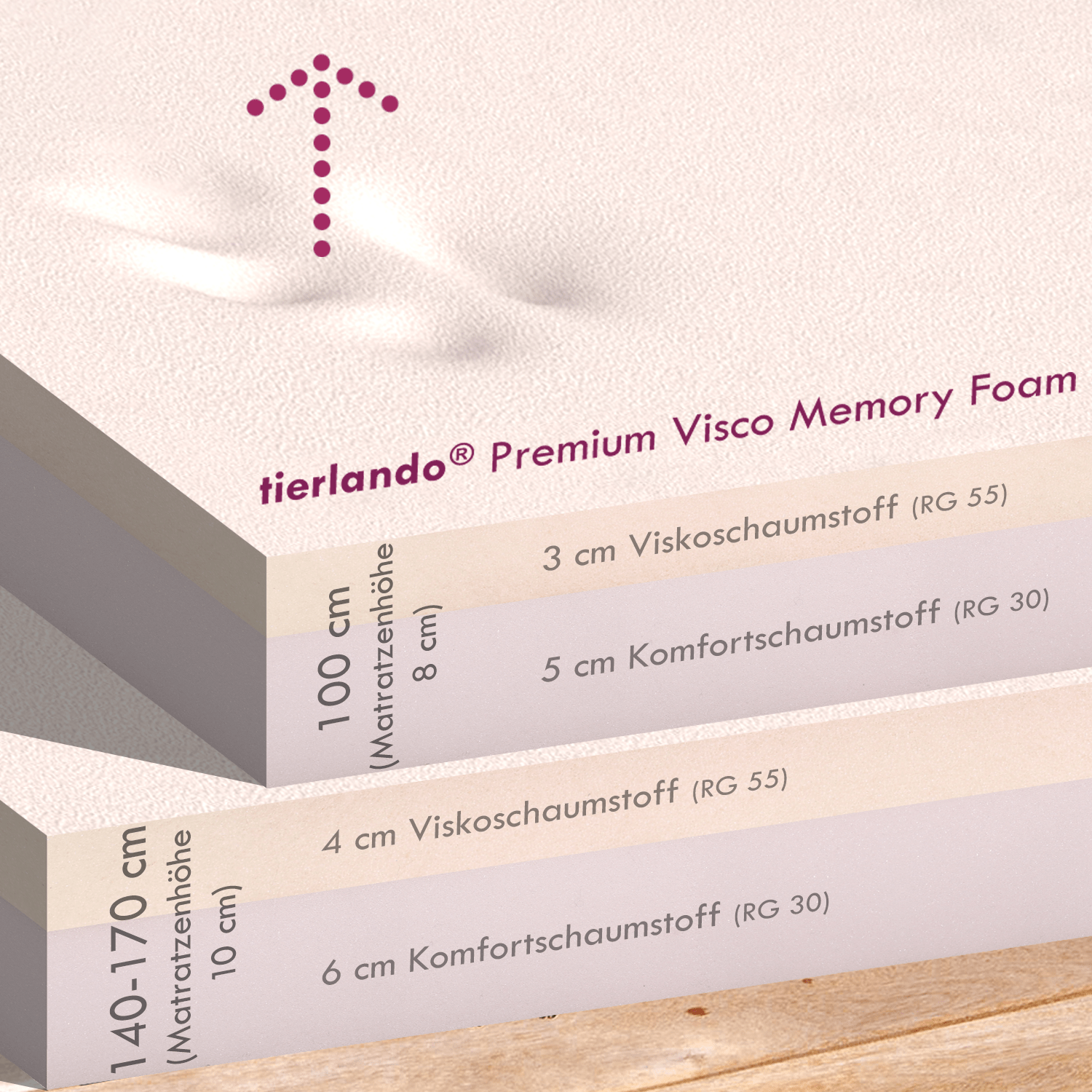 - PREMIUM | Hochwertige VISCO-PLUS-Matratze – orthopädisch wertvoll, passt sich optimal der Körperform an.