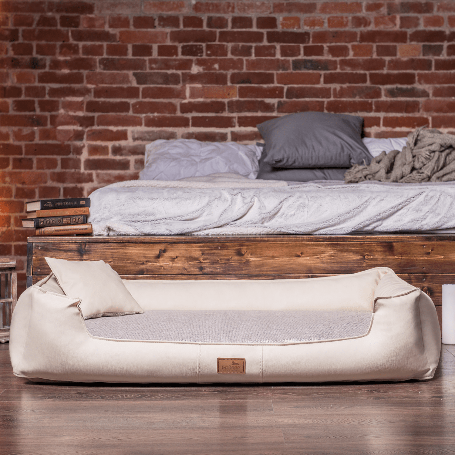 Bitte beachten Sie, dass bereits ein feuchter oder nasser Hund, der sich ins Bett legt, das Kunstleder schädigen kann. Auch eine häufige und intensive Reinigung mit Wasser führt dazu, dass das Material über längere Zeit Feuchtigkeit ausgesetzt wird und dadurch an Stabilität verliert.